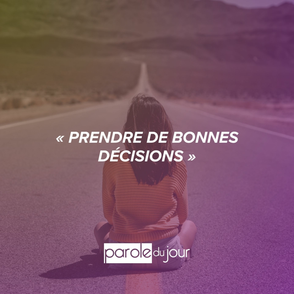 Salomon écrit : « La sagesse de l’homme prudent, c’est de comprendre sa voie », et aussi : « L’homme prudent voit le malheur et se cache, mais les simples passent outre et en sont punis » (Pr 22.3), et : « Les pensées de l’homme actif vont vers l’abondance, mais celui qui agit avec précipitation va vers la disette » (Pr 21.5). Ce que vous êtes aujourd’hui est le résultat de vos choix passés. Pour améliorer votre vie, apprenez à prendre de bonnes décisions. Voici dix principes à respecter. 1) Ne jamais prendre de décisions irrévocables basées sur des circonstances ponctuelles, sous peine de le regretter plus tard. 2) Ne pas laisser les émotions altérer le jugement. Prier, bien pesez les choses, savoir mûrement réfléchir. 3) S’entourer de personnes compétentes et tirer parti de leurs talents. 4) Prendre le temps d’examiner toutes les options. Ce qui semble bon aujourd’hui ne le sera peut-être plus demain. 5) Bien choisir ses combats, car toutes les causes ne méritent pas d’être défendues. 6) Prendre le temps de comprendre les tenants et les aboutissants pour éviter les problèmes. 7) Réfléchir aux conséquences de ses actes. Se demander si on est prêt à les assumer. 8) Veiller à ce que les attentes soient en rapport avec le potentiel dont on dispose. Se concentrer sur ce que Dieu demande de faire, c’est la clé de la réussite. 9) Utiliser son temps avec sagesse car il est précieux. 10) Ne jamais abandonner. Assumer ses erreurs, en tirer des leçons et recommencer aussi souvent que nécessaire.